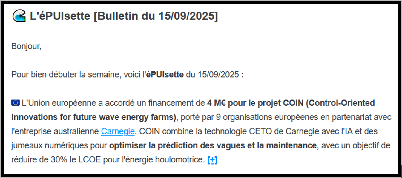 Inscrivez-vous à l'éPUIsette pour recevoir l'actualité des startups de l'oceantech et les grandes thématiques d'innovation du secteur chaque semaine.